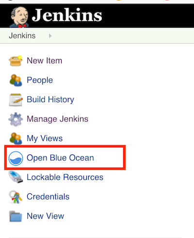 安装完插件后,你会在侧边栏上看到一个名为Open Blue Ocean的菜单项,如下图所示:
