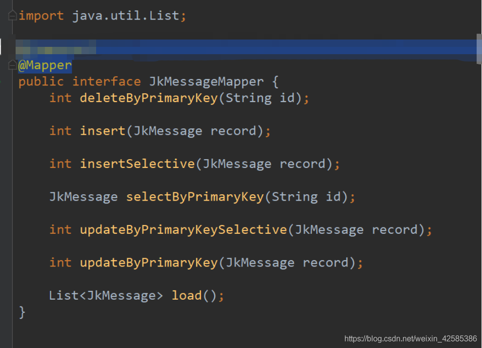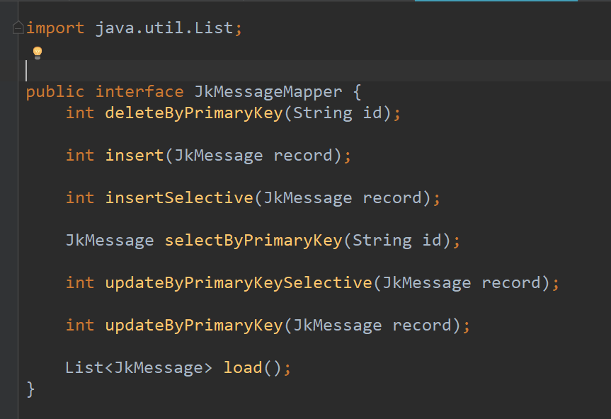 private JkMessageMapper jkMessageMapper;上面的代码,就是用于在实现了JkMessageMapper注入到bean容器后,可以自动创建该类对象,并交由bean容器管理;