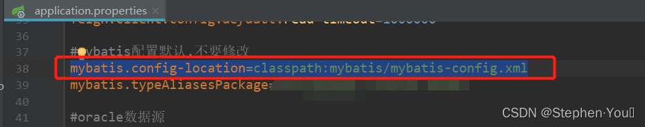 然后还需要在application配置文件中添加mybatis配置文件的路径: