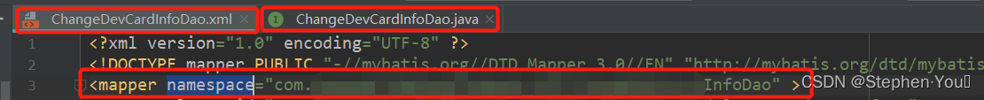 1、dao层xml文件(mybatis映射文件)中 namespace属性配置的路径和关联的dao层(接口类)文件的所在目录路径不一致。