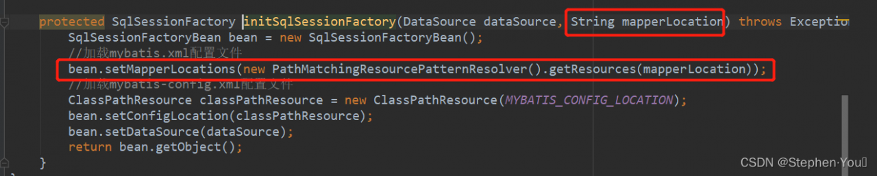 初始化 SqlSessionFactory 数据源工厂对象的时候,加载该路径,作用是在创建dao层类的bean对象时,能提供一个实例对象以供初始化: