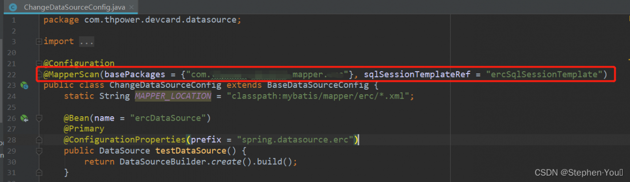 @MapperScan 注解可以加在数据源配置类上,或者是启动类上都可以。