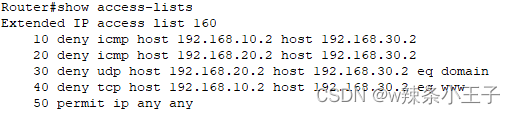 deny icmp 192.168.20.2 0.0.0.0 192.168.30.2 0.0.0.0等同于deny icmp 192.168.20.2 92.168.30.2