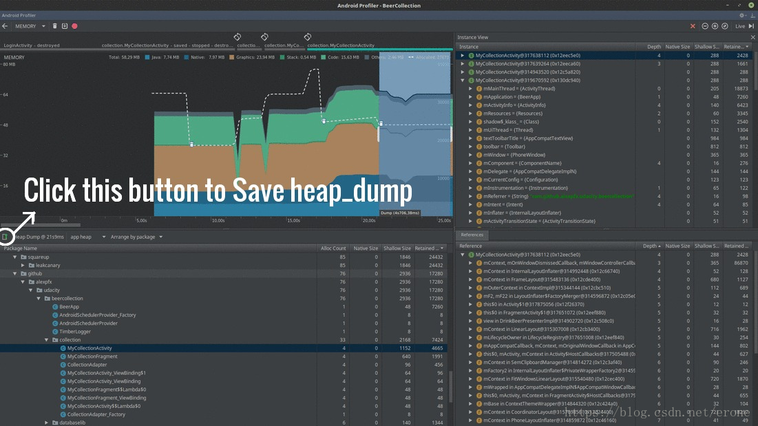 Android Studio 3.0 没有 Analysis Results(Leaked Activities)在Android Profiler中点击白圈按钮保存后缀名为.hprof的文件,再用AS打开即有Analysis Results选项 答案来自StackOverFlow @Shanki Bansal 版权声明:本文为erone原创文章,遵循CC 4.0 BY-SA版权协议,转载请附上原文出处链接和本声明。原文链接:https://blog.csdn.net/erone/article/details/80237357