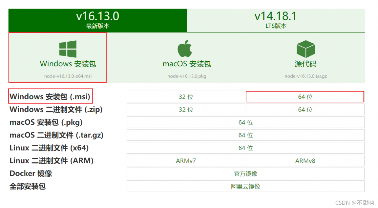 我这里下载的是node-v16.13.0-x64.msi,如下图