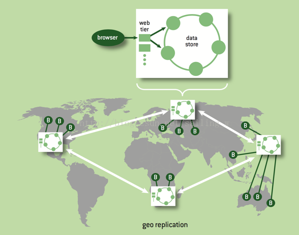 图1‑7 Geo-replicated架构下的数据分布[23]