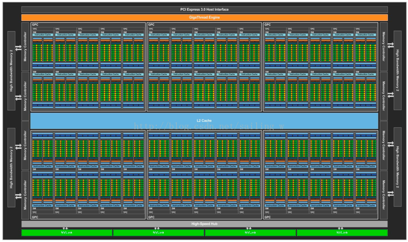 图1‑3 Nvidia Pascal GP100 GPU组成结构[9]
