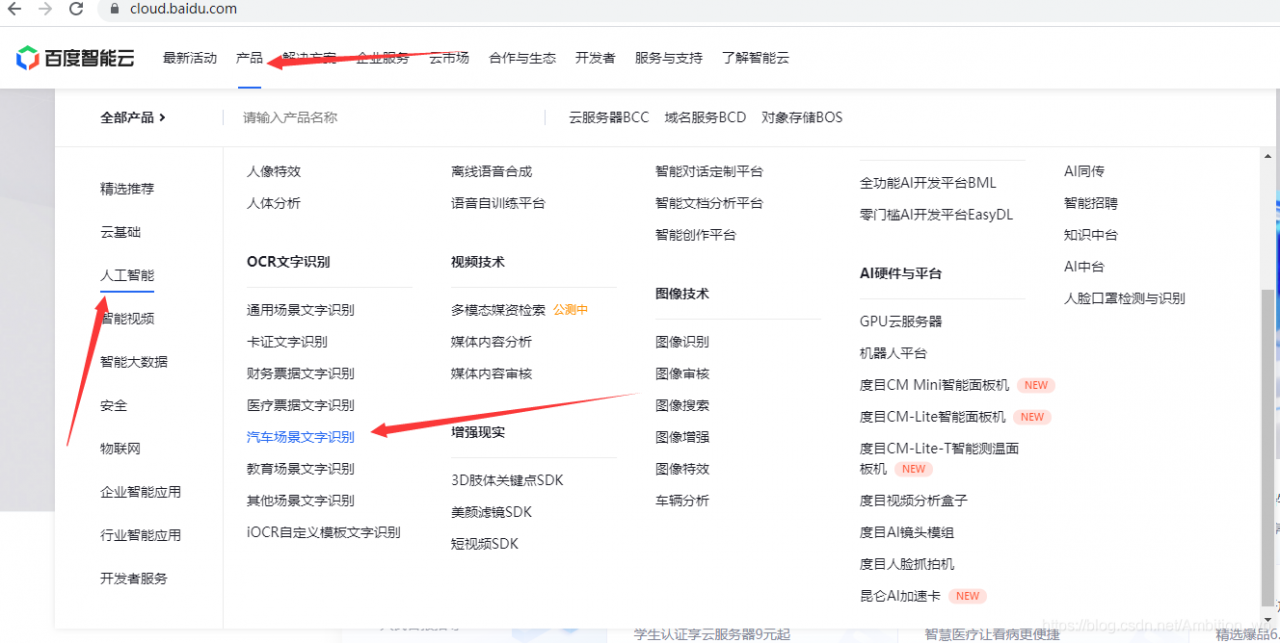 产品 ===》 人工智能 ===》 汽车场景文字识别