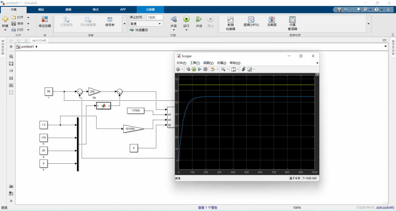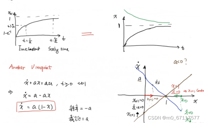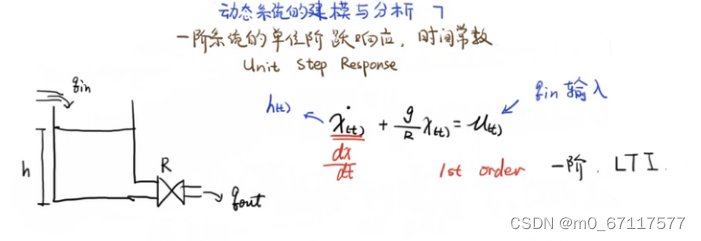 一阶系统 一阶系统的微分方程为: 传递函数为: 单位阶跃响应的拉普拉斯变换为: 单位阶跃响应为: 响应曲线: 性能描述: 由于c(t)的终值为1,因而系统阶跃输入时的稳态误差为零。