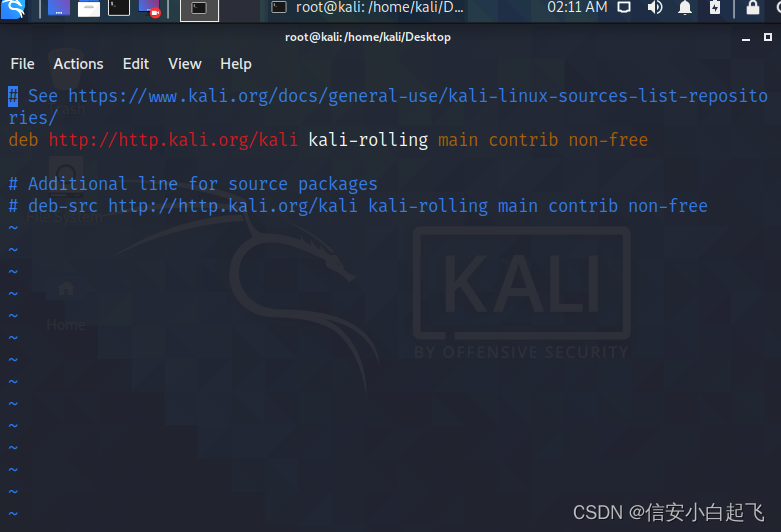 - deb http://mirrors.ustc.edu.cn/kali kali-rolling main non-free contrib