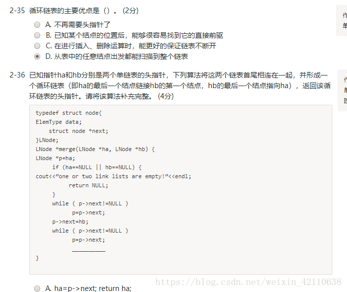 但在最后一个结点后面插入,c就方便的多了,而d一定要注意,他可没说循环