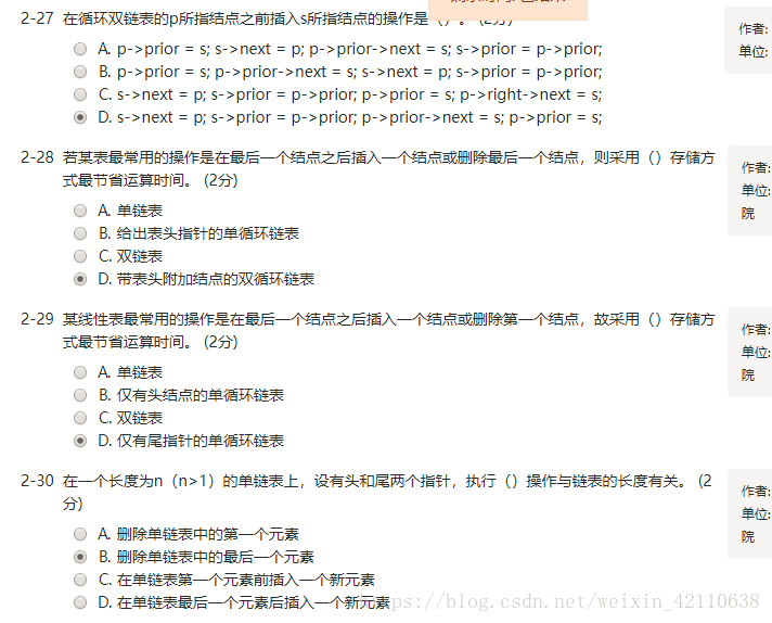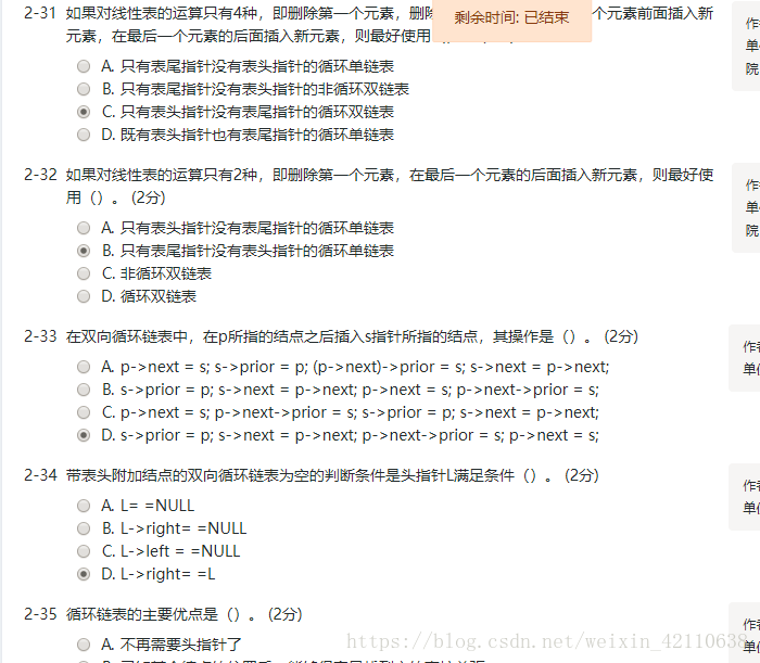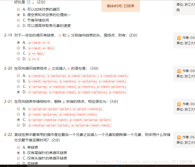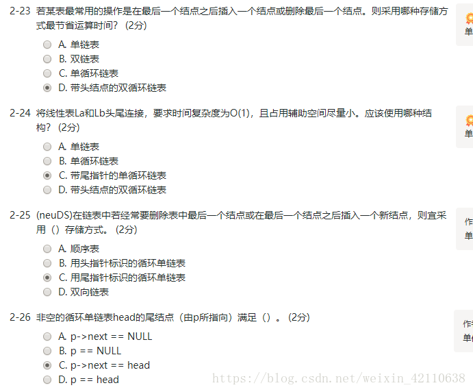 这次的题关于循环链表和双向链表的部分真的很难,不会的不少,我再想想吧