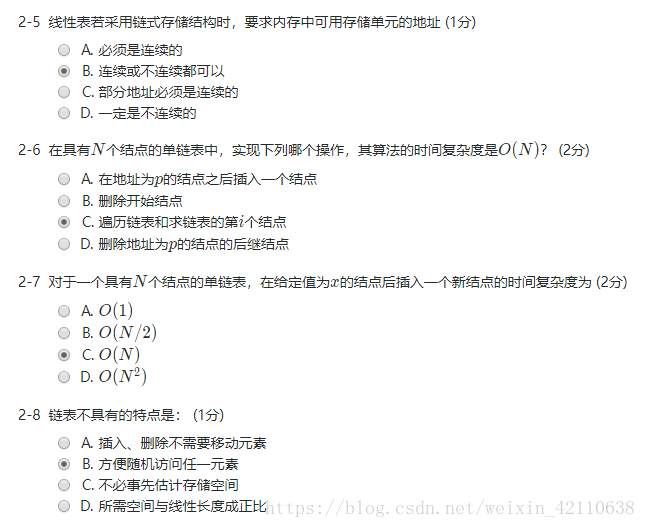 对于一个具有N个结点的单链表,在给定值为x的结点后插入一个新结点的时间复杂度为 (2分)