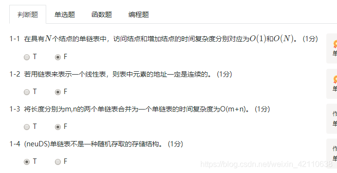 (neuDS)单链表不是一种随机存取的存储结构。 (1分)