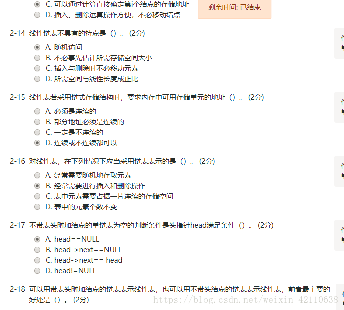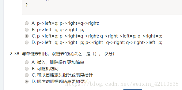 如果对线性表的运算只有4种,即删除第一个元素,删除最后一个元素,在第一个元素前面插入新元素,在最后一个元素的后面插入新元素,则最好使用()。 (2分)
