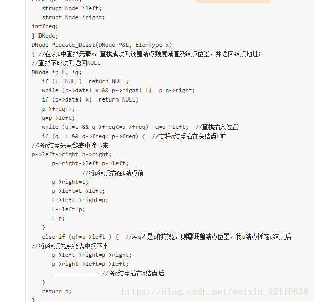 while (q!=L && q->freq<=p->freq) q=q->left; //查找插入位置