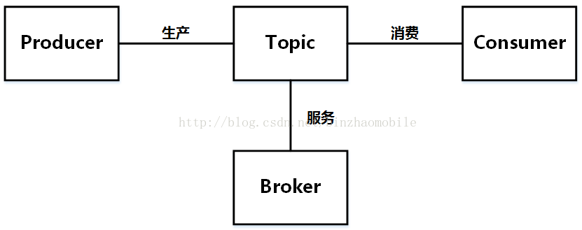 如果不考虑负载均衡和高可用,最简单的Broker,Producer和Consumer之间的关系如下图所示: