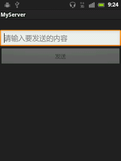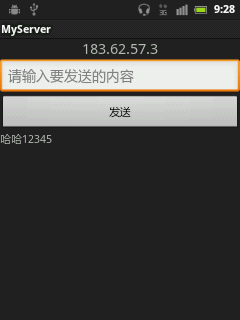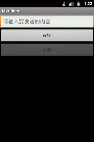 MyClient工程的main.xml文件不用修改,只需要修改MyClientActivity.java文件,主要是定义了一个继承自Thread类的用于接收数据的类,覆写了其中的run()方法,在这个函数里面接收数据,接收到数据后就通过Handler发送消息,收到消息后在UI线程里更新接收到的数据。完整的内容如下: