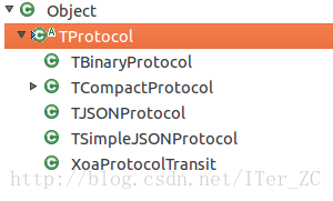 Thrift的协议比较简单,它把协议和编解码整合在了一起。抽象类TProtocol定义了协议和编解码的顶层接口。个人感觉采用抽象类而不是接口的方式来定义顶层接口并不好,TProtocol关联了一个TTransport传输对象,而不是提供一个类似getTransport()的接口,导致抽象类的扩展性比接口差。