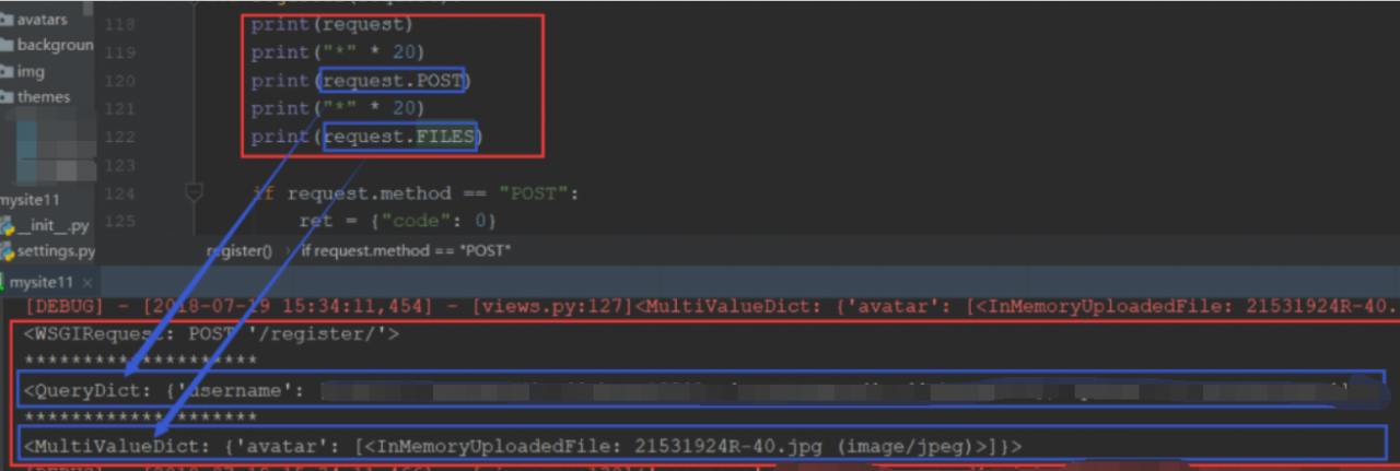 print(request.body) # 原始的请求体数据 print(request.GET) # GET请求数据 print(request.POST) # POST请求数据 print(request.FILES) # 上传的文件数据