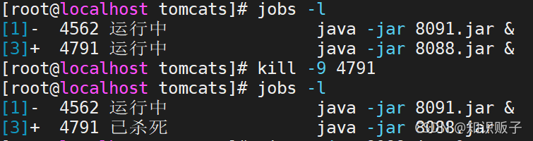 命令:java -jar 8091.jar &(回车触发后续命令)