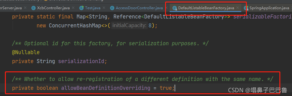 allowBeanDefinitionOverriding = true但是为什么还需要在项目的配置文件中单独配置这个属性呢。那是因为SpringBoot对这个参数进行了二次封装,并使用了boolean的默认值false: