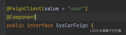 @FeignClient(value = "user", contextId = "SysCarFeign")现在有两种方案可以解决此问题,那究竟是配置spring.main.allow-bean-definition-overriding=true,还是在@FeignClient中指定contextId。对于这个问题,我没有进一步的查找资料,个人观点是在@FeignClient中指定contextId为好,因为这样会保证项目中所有的bean都能被Spring管理起来。而配置spring.main.allow-bean-definition-overriding=true会导致前面的bean被后面相同名字的bean覆盖,会产生很多意想不到的情况。