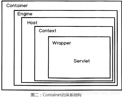 Container是容器的父接口,该容器的设计用的是典型的责任链的设计模式,它由四个自容器组件构成,分别是Engine、Host、Context、Wrapper。这四个组件是负责关系,存在包含关系。通常一个Servlet class对应一个Wrapper,如果有多个Servlet则定义多个Wrapper,如果有多个Wrapper就要定义一个更高的Container,如Context。 Context定义在父容器 Host 中,其中Host 不是必须的,但是要运行 war 程序,就必须要 Host,因为 war 中必有 web.xml 文件,这个文件的解析就需要 Host 了,如果要有多个 Host 就要定义一个 top 容器 Engine 了。而 Engine 没有父容器了,一个 Engine 代表一个完整的 Servlet 引擎。