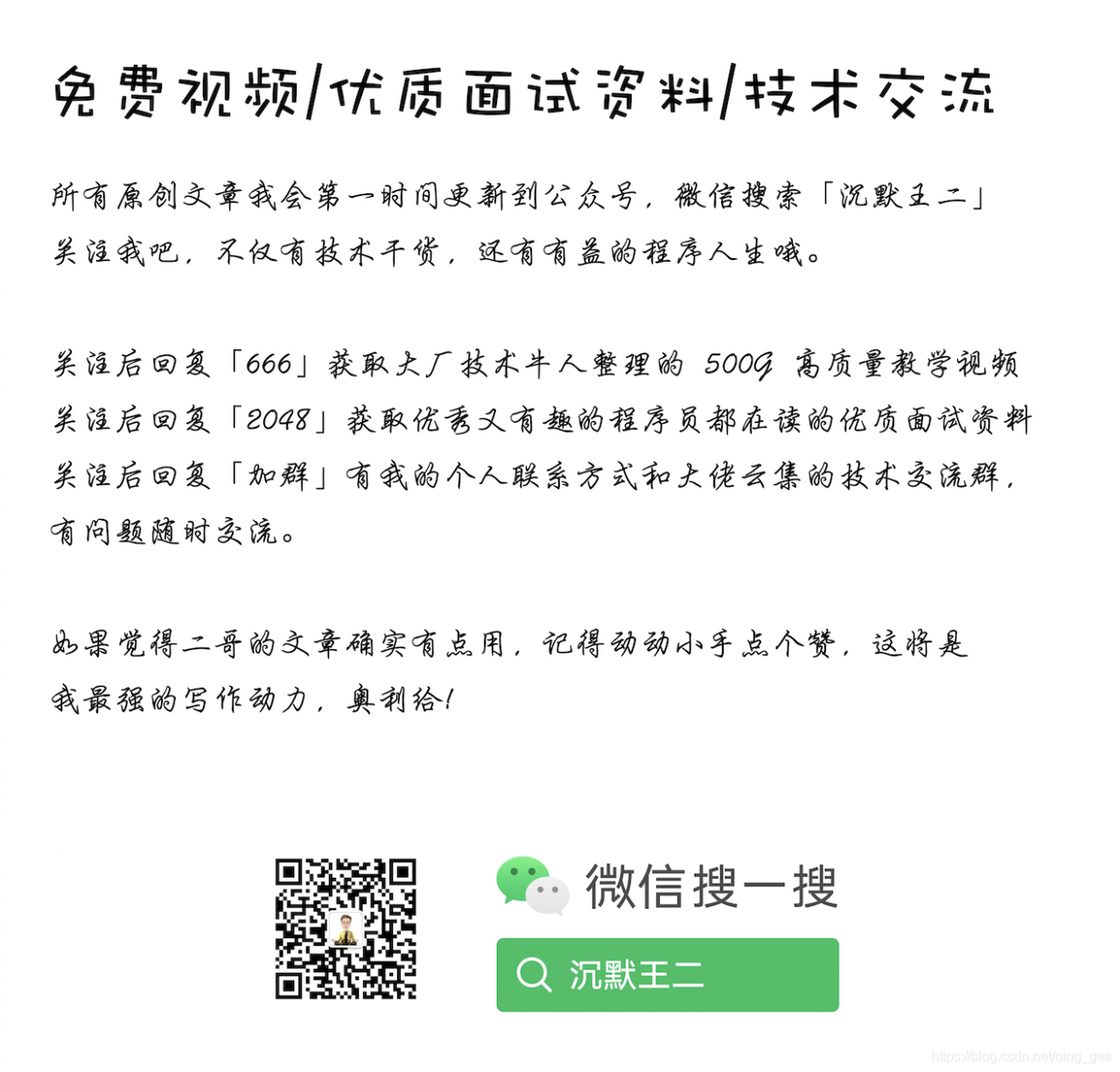 总有不少读者私下问我:“二哥,马上面试了,心虚怎么办?”我的回答无一例外,“刷面试题啊。”不然呢?
