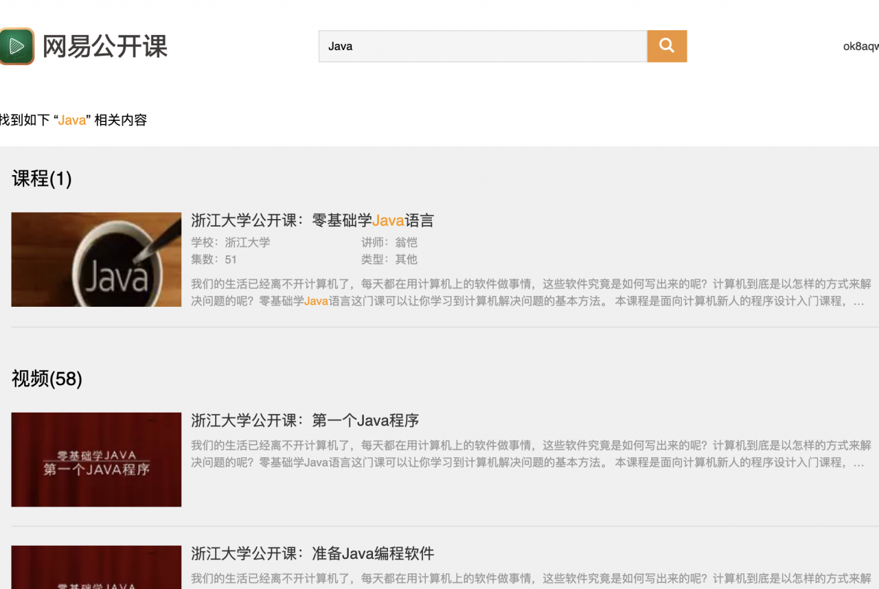 上面付费的公开课比较多了,但仍然有一些不错的免费课程,比如说,你搜 Java,就有这个浙大的公开课。我看了一下,讲师背后是满满的书啊,各种计算机书,想必也是个博学的老师,他的课也确实符合入门者的需求。