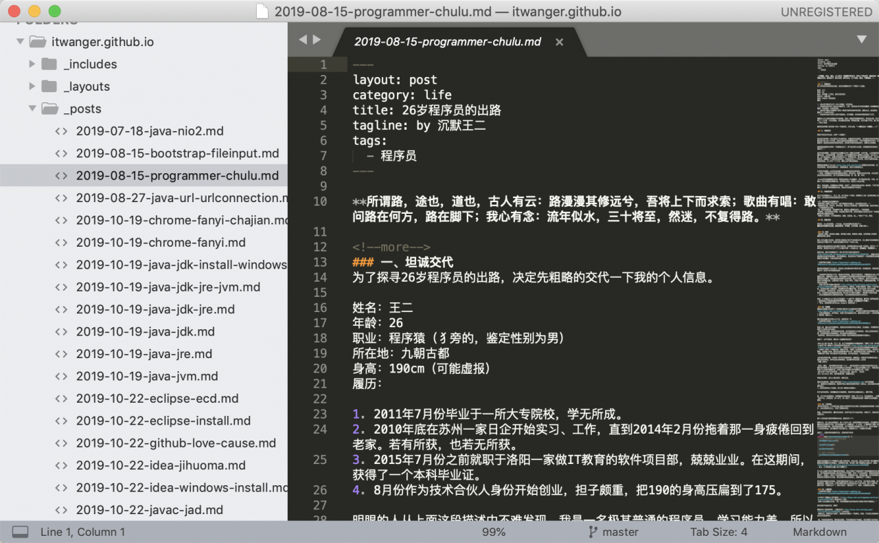 Sublime Text 是一款超级流行的代码编辑器软件,支持 markdown 格式,我平常离线写文章的话就用它,很多程序员都喜欢它。