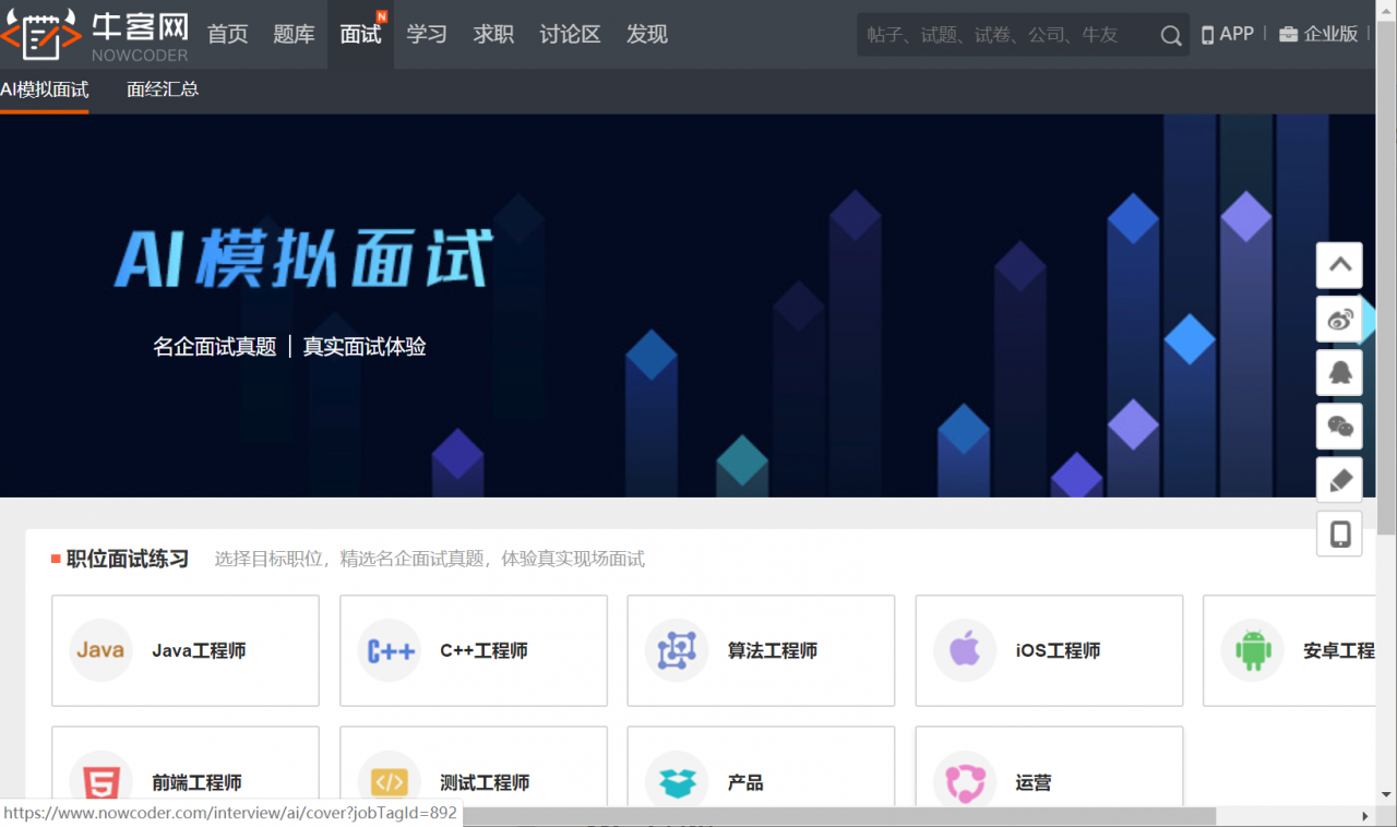 牛客网(或力扣)是一个专注于程序员学习和成长的专业平台,集笔面试系统、课程教育、社群交流于一体。