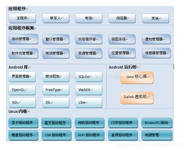 Android架构图(五层框架):https://www.cnblogs.com/pengdonglin137/p/3858254.html