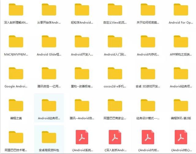 为了提高大家的学习效率,帮大家能快速掌握Android开发的各个知识点。为大家整理了一套系统的Android开发者进阶学习笔记。