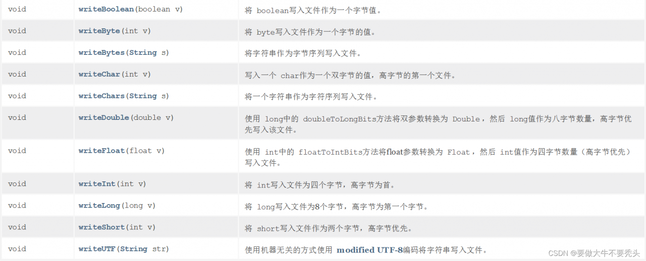 注意:RandomAccessFile只适用于读写文件,并不能读写其他IO节点