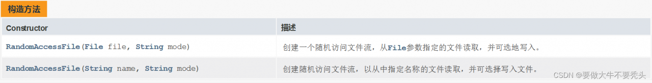 构造方法参数 : File文件对象/String文件路径 , String类型mode