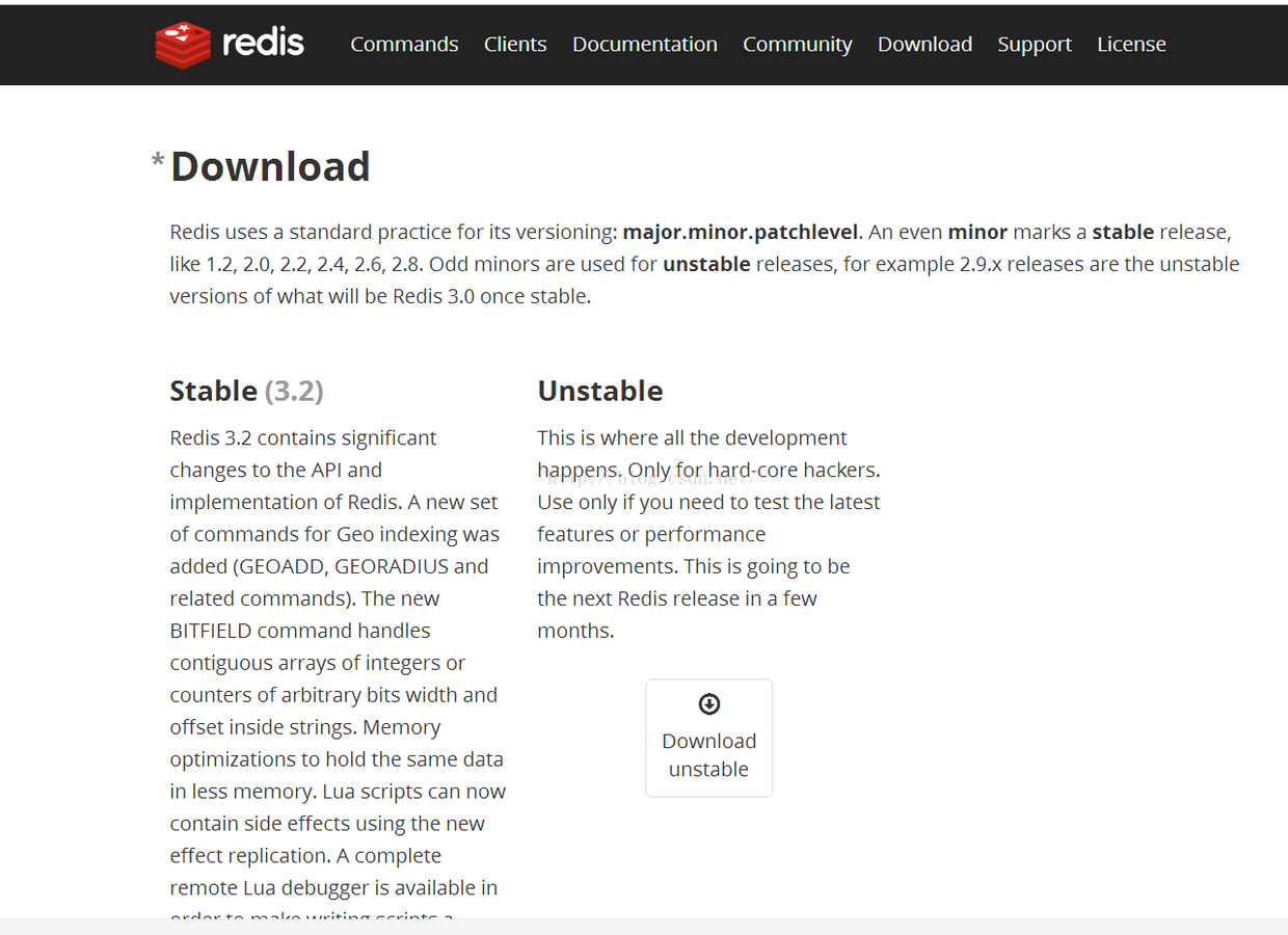 官方下载:http://redis.io/download 可以根据需要下载不同版本