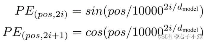 其中,pos为单词处于一句话中的位置,i为该单词的编码向量中元素的位置。