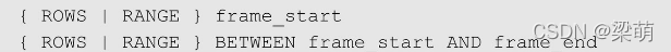 其中,ROWS表示以数据行为单位计算窗口的偏移量,RANGE表示以数值(例如10天、5km等)为单位计算窗口的偏移量。