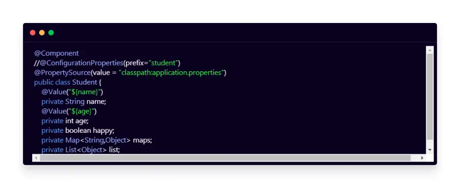 @ConfigurationProperties(prefix="student") springboot通过这个寻找到配置文件的yaml