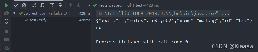将此令牌复制粘贴到测试方法testVerify()中的token中,将公钥信息粘贴到publickey变量中,然后执行该测试方法。