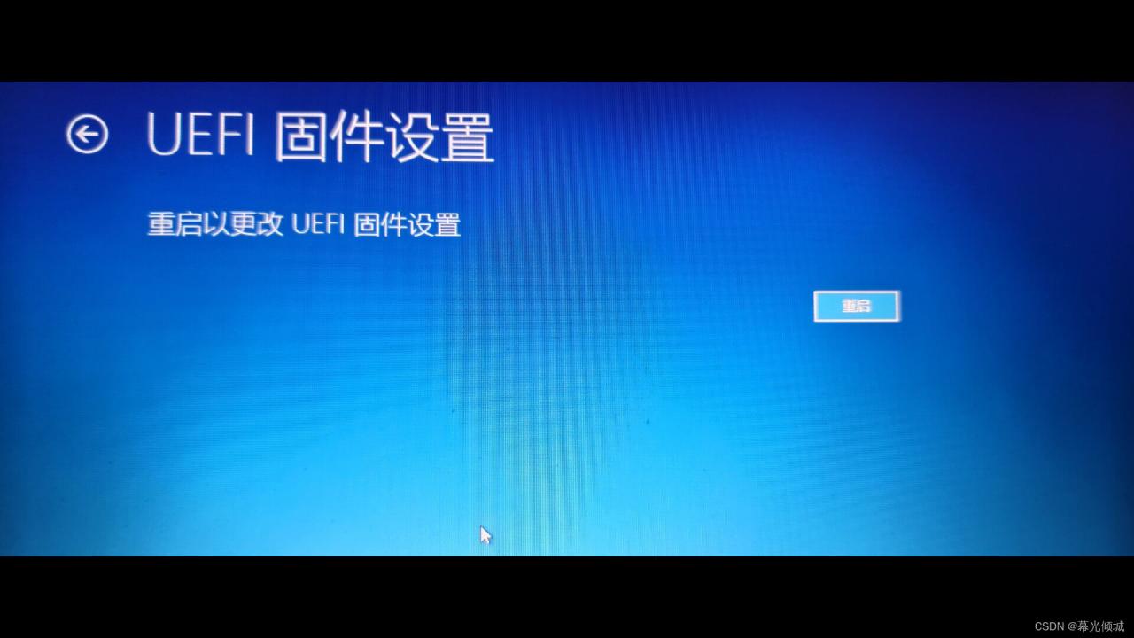 - 第二步:接着选择疑难解答>>高级选项>>UEFI固件设置>>重启。(如图所示)