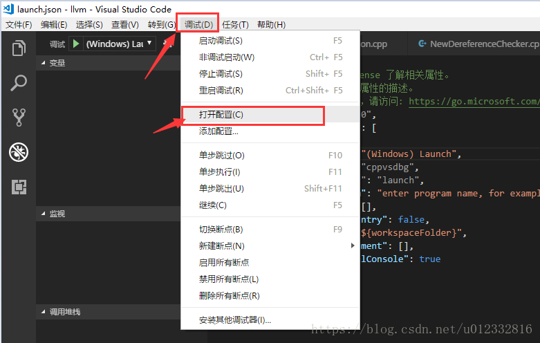 可以在 VSCode的[调试]->[打开配置]中打开,