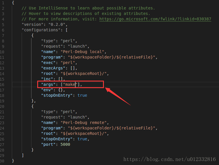 除了调试 perl 语言,调试其它语言也是一样的,都有个 launch.json 配置文件可以配置的,