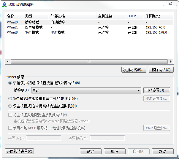 查看以上对应是在VMware workstation中的编辑-虚拟网络编辑器
