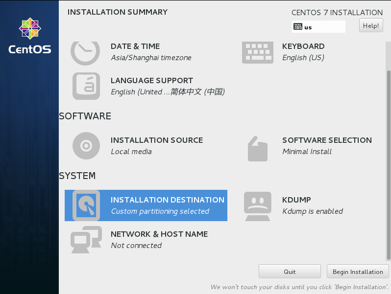 19、INSTALLATION SUMMARY 安装总览(这里可以完成centos 7 版本Linux的全部设置)