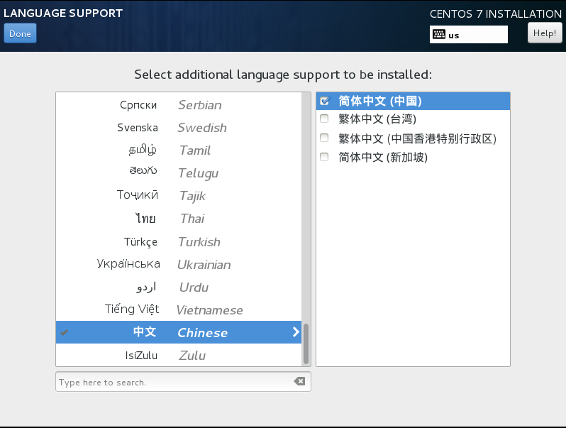 可以是默认的English 也可以自行添加Chinese简体中文的支持