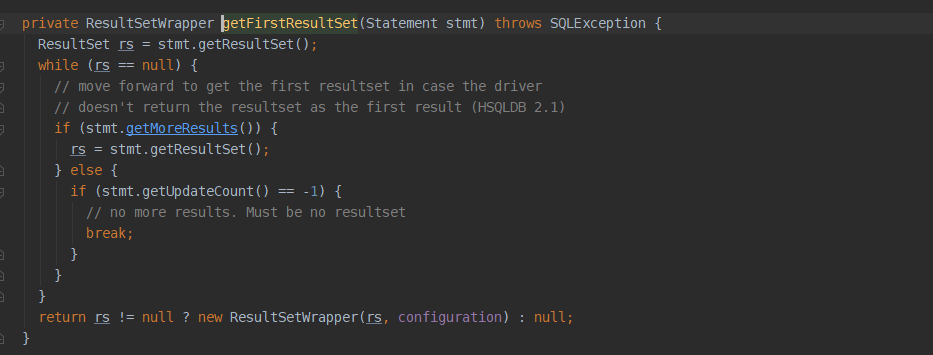 ResultSetWrapper rsw = getFirstResultSet(stmt);