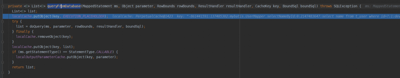 list = queryFromDatabase(ms, parameter, rowBounds, resultHandler, key, boundSql);