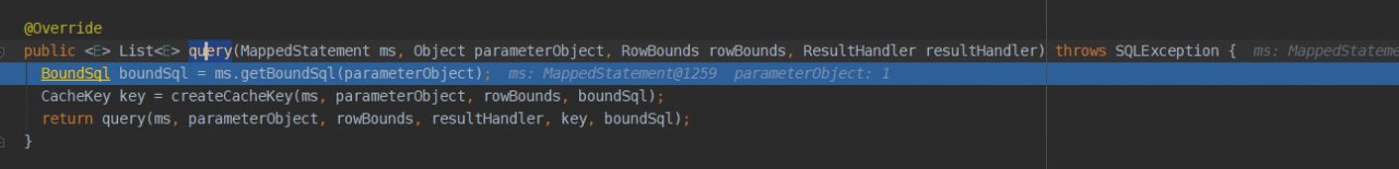 通过类名我们可以猜测到,这个Executor执行类是使用内存的,将数据保存到缓存中,这样可以有效的解决增删改查性能。缓存的作用域为mapper(namespace),所以同一个namespace的操作会影响到相同作用域下的缓存,这样不同的域对同一个表进行操作很有可能导致缓存中的数据不一样,出现问题,还是不推荐使用。我们看方法的内容: